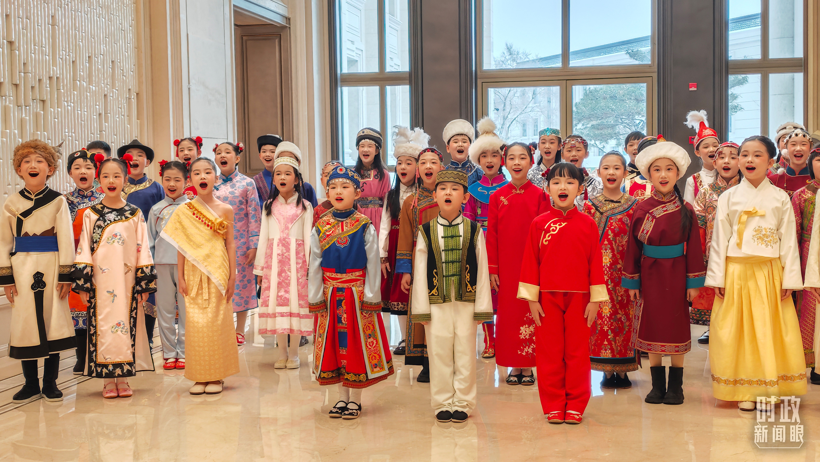 ▲欢迎宴会现场,少年儿童正在合唱黑龙江民歌《乌苏里船歌》。(总台央视记者闫耀东拍摄)