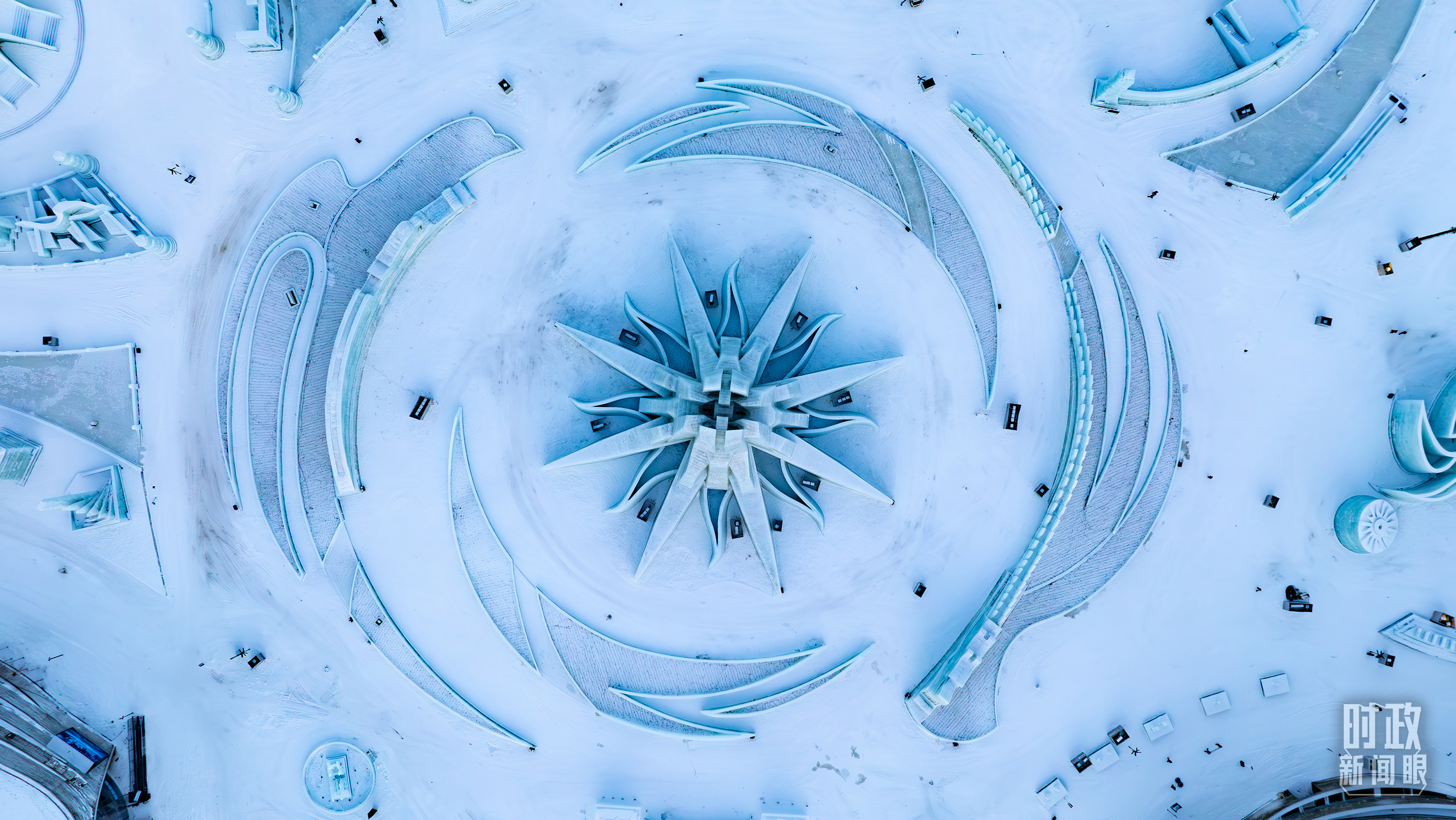 ▲哈尔滨冰雪大世界“雪花”图案。(总台记者邵冲拍摄)