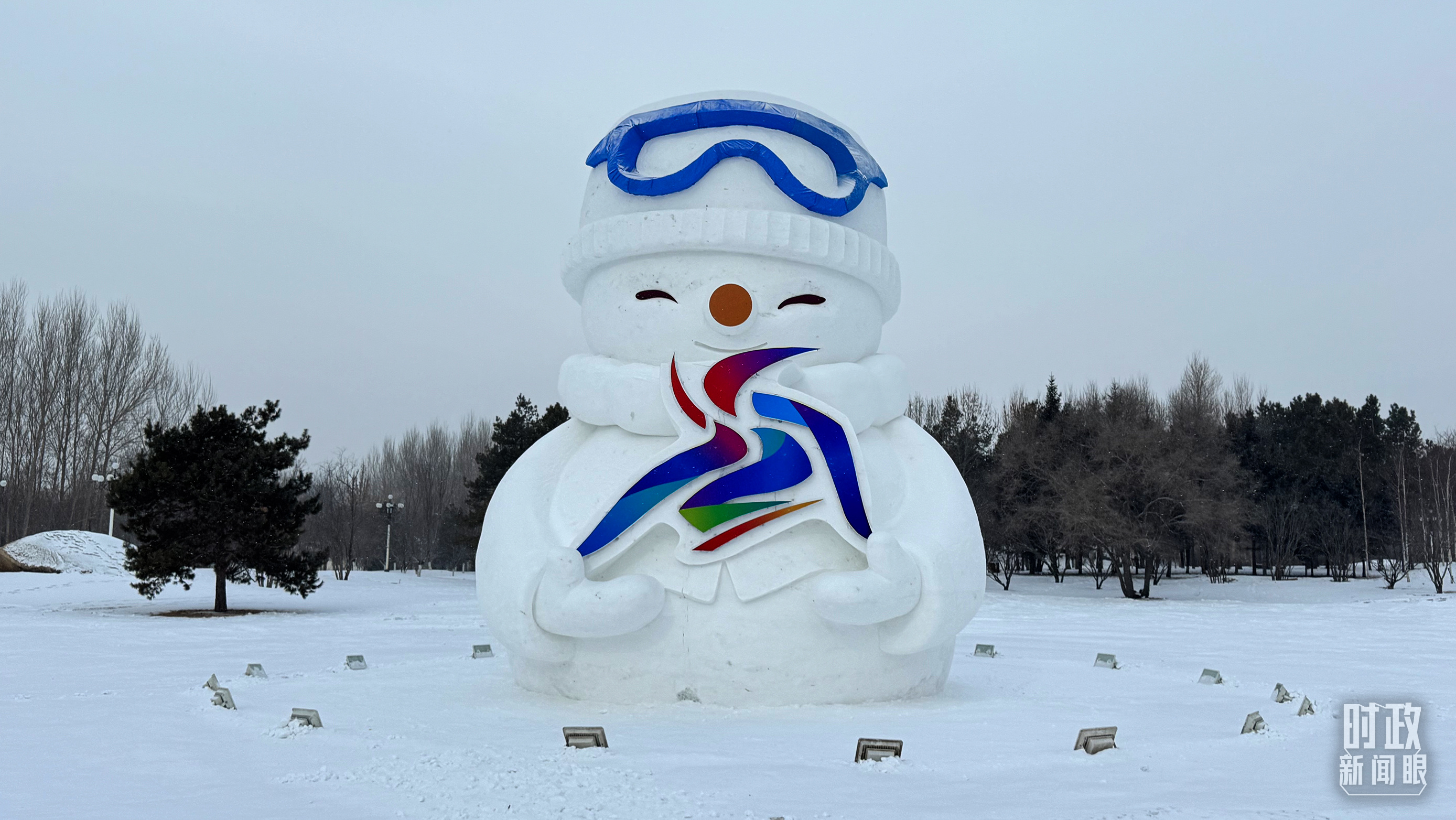 ▲装饰有亚冬会会徽元素的雪人。(总台央视记者蒋硕拍摄)