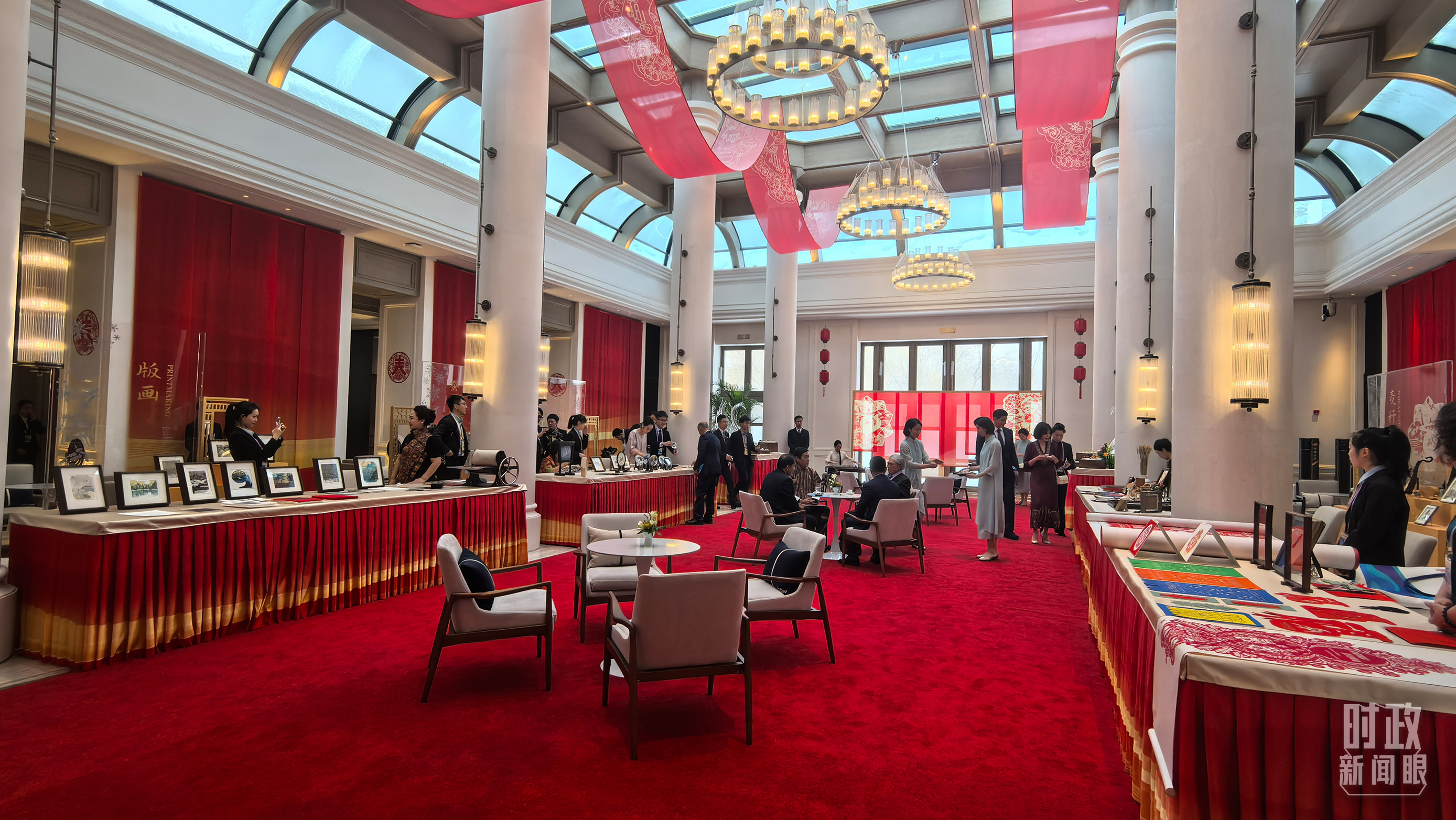 ▲欢迎宴会开始前的黑龙江非物质文化遗产展示。(总台央视记者史伟、央广记者马喆拍摄)