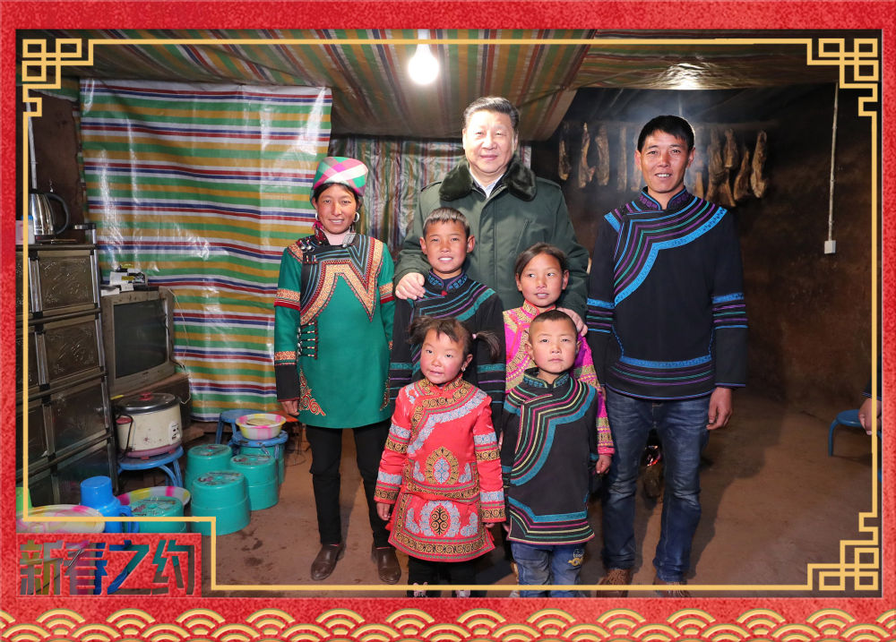 2018年春节前夕,习近平总书记乘车沿着坡陡沟深的盘山路来到四川大凉山。在昭觉县三河村,年仅10岁的吉好有果为总书记唱了一首《国旗国旗真美丽》。听完,总书记带头鼓掌,夸她唱得好。