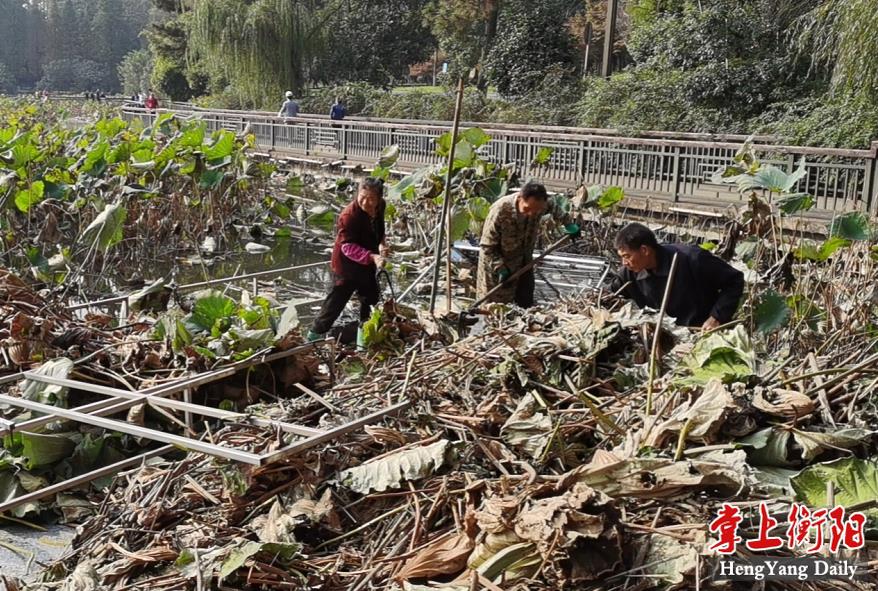 衡阳晚报11月4日讯(记者胡亚华) 迈入深秋,满湖枯荷听雨声。连日来,一台大型荷叶收割机驶入了南湖公园,在荷花池中纵模驰骋,快速收割枯残的荷叶,引来不少游客驻足围观。南湖公园管理处首次利用荷叶收割机收割枯荷,通过机械臂将收割的枯荷转运船上,集中收集清运处理,提高了作业效率,改善了湖水水质,保障来年的荷花开得更加娇艳迷人。