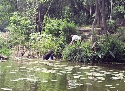 小伙勇救落水男童的一幕,恰巧被在附近用手机拍摄风景的魏华兰女士全程目睹。她告诉记者,当时救人小伙穿着黑色衣服,听到呼救声后,就迅速跑到湖边。当他看到小孩离岸边有3、4米远后,便径直跳进湖里对男童进行全力营救。“小伙见义勇为的举动,让我很感动、很敬佩,于是我用手机记录下他救下男童的过程。”魏华兰称。