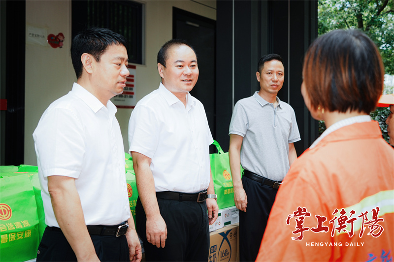 衡阳日报8月8日讯(全媒体记者文/罗文鹏 图/王皓永)近日,市委副书记、市长朱健赴高新区、雁峰区开展“雁城送清凉 防暑保安康”走访慰问活动,向高温天气下坚守一线岗位的环卫工人、建筑工人和产业工人送去市委、市政府及工会组织的关心关爱,对广大劳动者致以崇高敬意,并要求全市各级各部门不断提高保障水平,着力创造更好的工作生活条件,确保项目建设加力提速、企业发展安全稳定、工作人员身心健康。