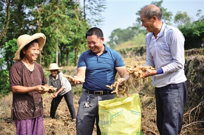 ▲常宁市石山村尾参丰收。