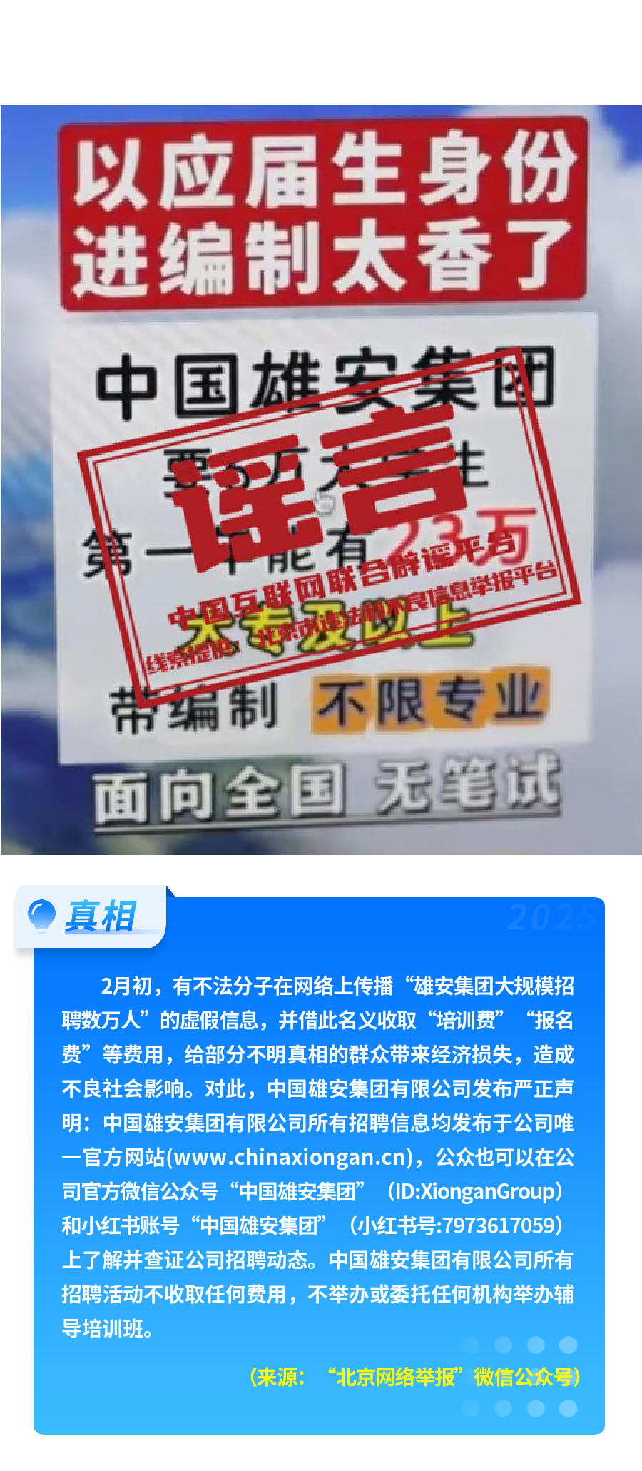 炒作社会民生谣言误导认知。一些造谣传谣者利用民众对就业、医保、交通等民生热点的关切和对体育、健康等话题的关注,处心积虑编造谣言,以此吸引眼球、谋取流量。如有不法分子在网上传播“雄安集团大规模招聘数万人”的虚假信息,并借机收取“培训费”“报名费”,给部分不明真相群众造成经济损失,影响社会和谐稳定。又如各省年终结算公布之际,“广东医保基金出现赤字”的谣言随之传出,不仅引发社会恐慌情绪,还对我国现行医保政策造成误解质疑。还有网民利用舆论对新能源汽车智驾技术、交通建设规划的高关注度,编造“首例智能驾驶致死案宣判,车企担责70%”“宁(江苏南京)马(安徽马鞍山)城际铁路延期试运营”等谣言,引发公众担忧情绪。此外,哈尔滨亚冬会期间“冰球项目允许‘合法打架’”,以及冬季心脑血管疾病高发之际“心脏支架手术将被淘汰”等不实信息传出,都对社会公众的认知产生了严重误导。