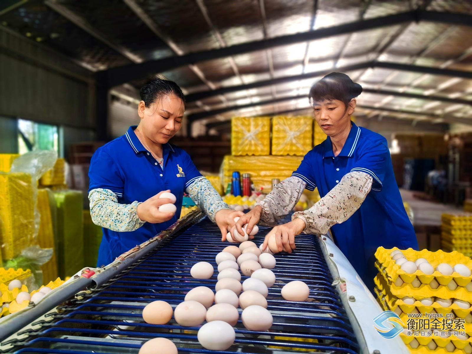 衡阳日报讯(文/图 全媒体记者谢小青 实习生陈俞帆) “每天产销鸡蛋20万个,年产值9000万元。”7月10日,位于衡东县大浦镇岭茶村的衡阳鲜盛农产品有限公司特色禽蛋产业基地内,刚产出的鲜鸡蛋“坐”着传送带匀速流转,工人麻利地分拣、装盒,发往省内及粤港澳大湾区。