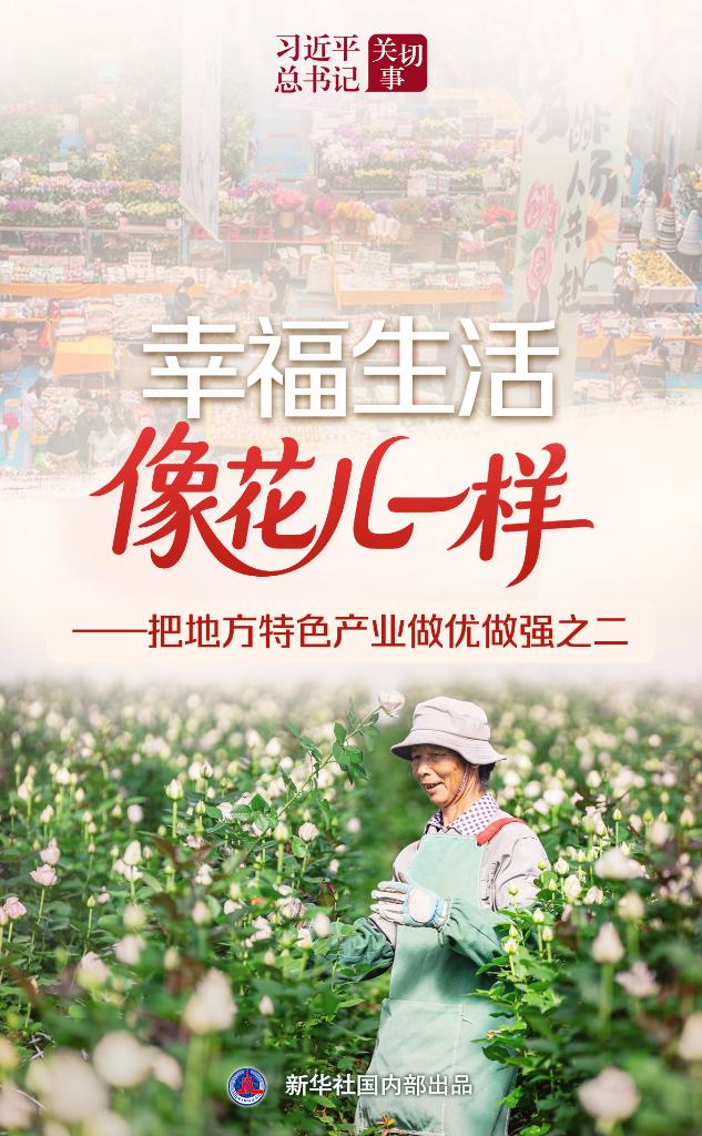 不仅仅是云南,花卉产业正成为全国多地的致富产业。这些年,习近平总书记赴地方调研时,多次考察乡亲们的“致富花”,指引如何更好地让这一“美丽产业”成为造福群众的“幸福产业”。