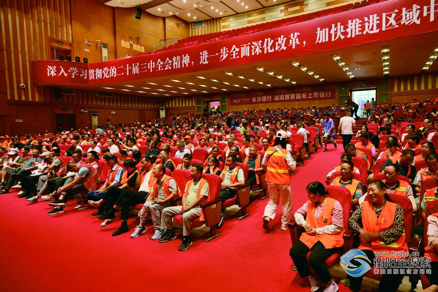 衡阳日报讯(全媒体记者周围)7月26日上午,周末惠民剧场第五场在市政府会议中心精彩开演。本次演出以“致敬城市美容师”为主题,特邀请200多名一线环卫工人和近200名城管人员共同观剧。