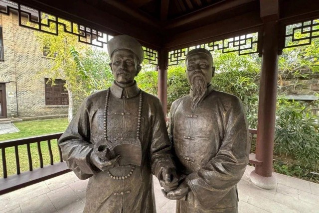 ▲船山书院里,彭玉麟与王闿运塑像。资料图