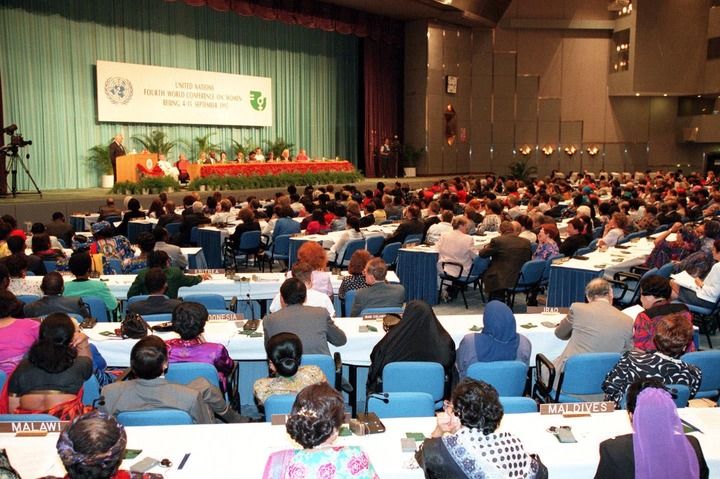 ▲1995年9月4日,联合国第四次世界妇女大会在中国北京召开。会议通过了具有里程碑意义的《北京宣言》和《行动纲领》。新华社发