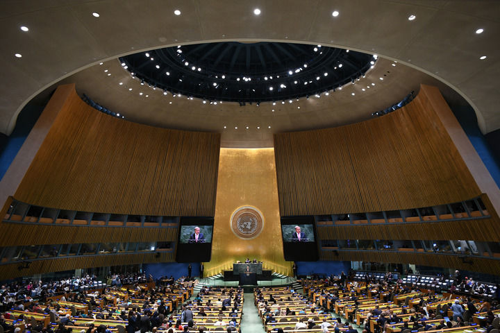 ▲这是2025年9月22日在位于纽约的联合国总部拍摄的联合国大会纪念北京世妇会30周年高级别会议现场。新华社记者 李睿 摄