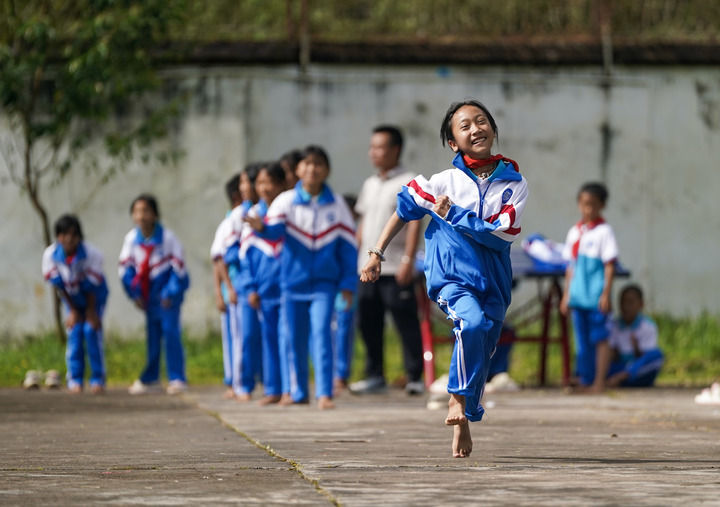 ▲2025年9月15日,云南省普洱市孟连傣族拉祜族佤族自治县腊福小学学生课间在操场进行奔跑接力比赛。新华社记者 陈欣波 摄