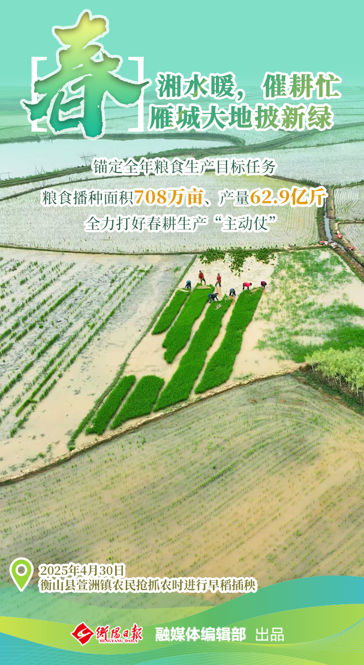 衡阳大力推进早稻专业化育(供)秧,在全市建成107个集中育秧设施,高质量完成省定172万亩早稻集中育秧任务,力保早稻种植面积稳定在230.8万亩以上。