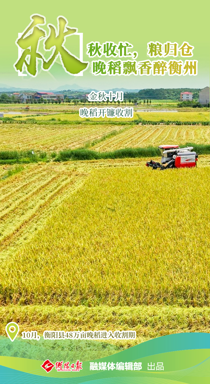 进入十月,衡阳各地农民抢抓农时,利用农机高效收割。