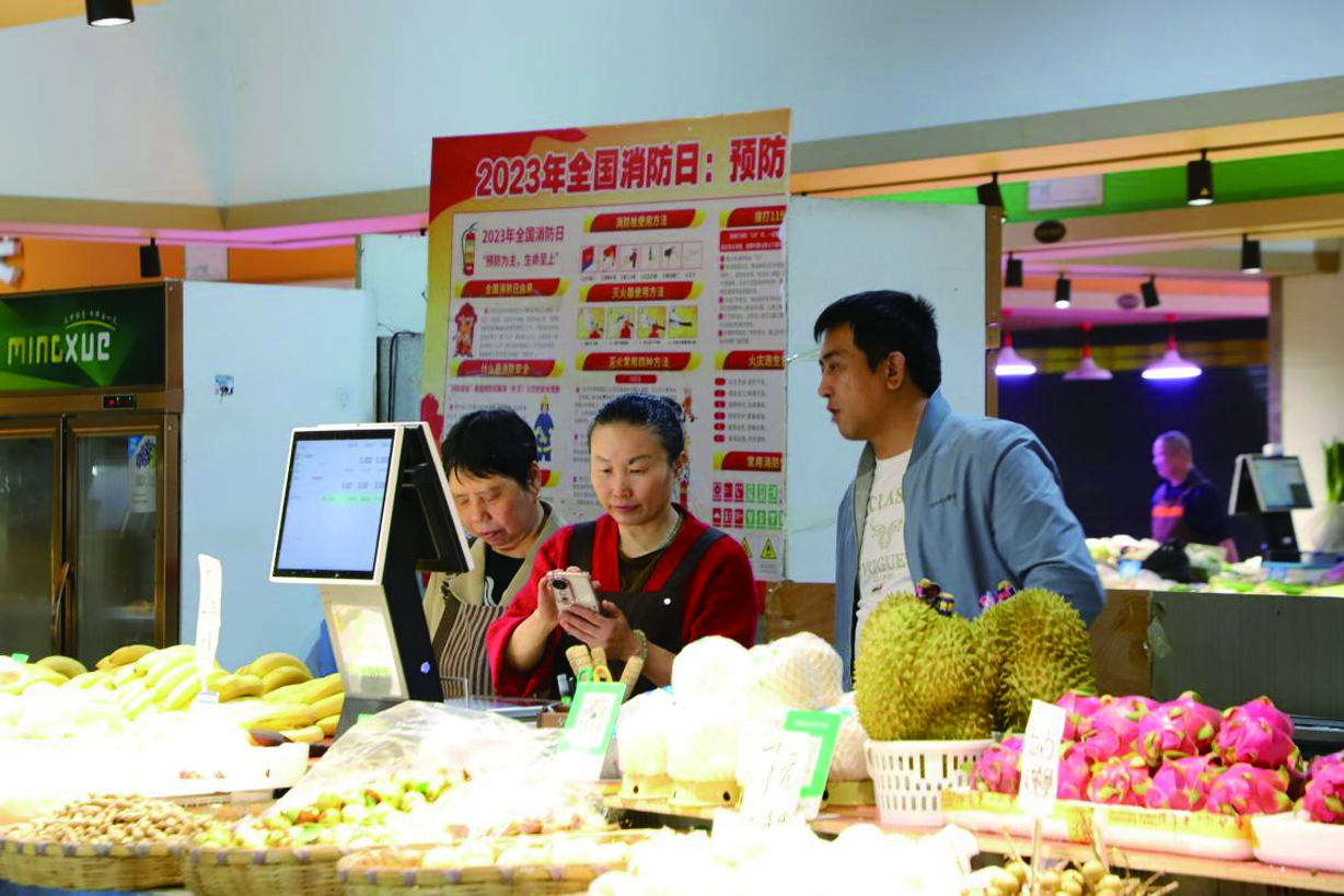 水果摊前,市民林秋凤正在购买榴莲,智慧公平秤上就显示出重量、单价、金额,她支付成功后一张带着溯源码的小票自动吐出。“以前买高档水果总担心秤不准,现在市场里配发了由邮政免费提供统一校准过的智能秤,就直接免去了我的后顾之忧。邮政推出的购物减免活动,更是我们百姓的福音!”林秋凤为衡阳邮政点赞。