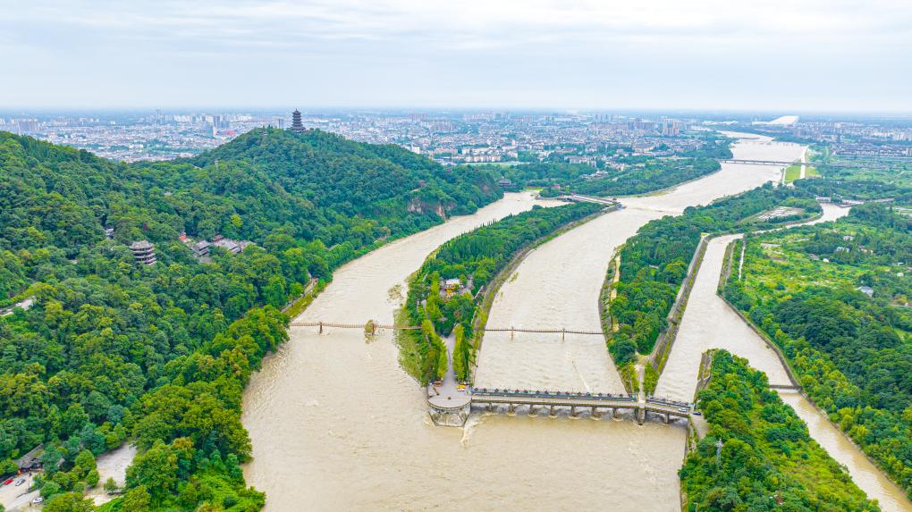 ▲2025年7月拍摄的都江堰水利工程(无人机照片)。新华社发(何勃 摄)