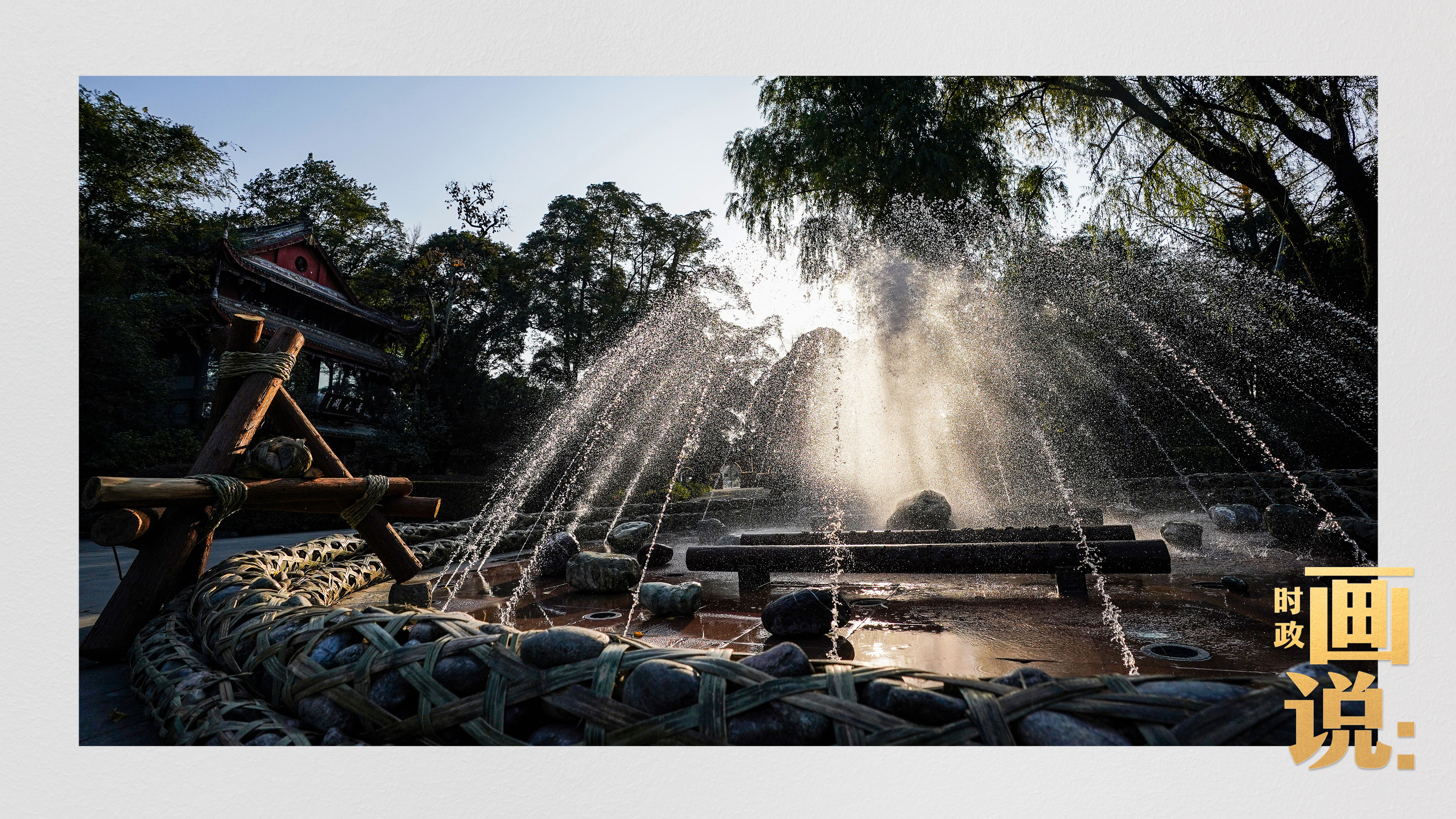 ▲习近平和夫人彭丽媛同马克龙夫妇在都江堰进行友好交流