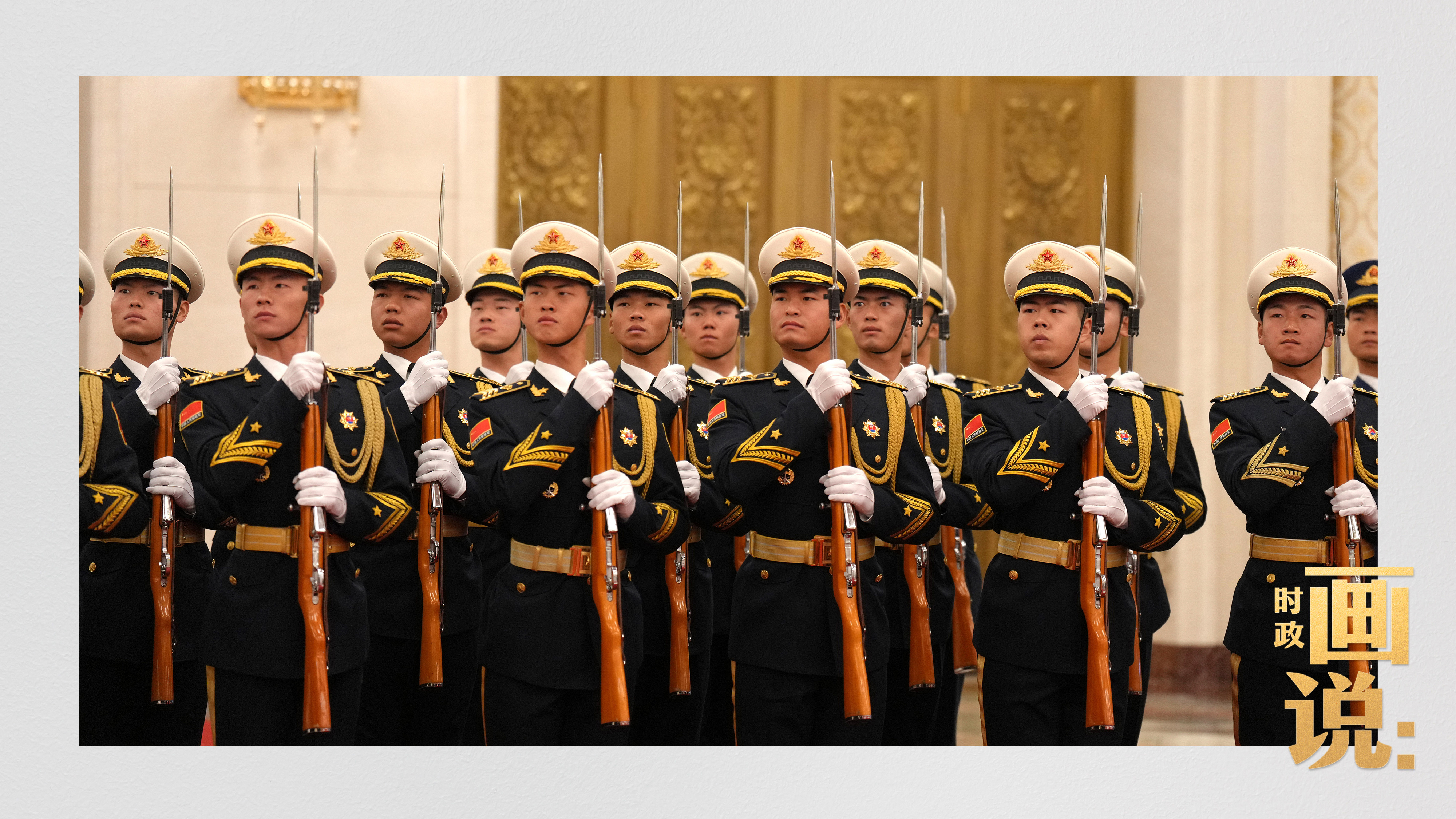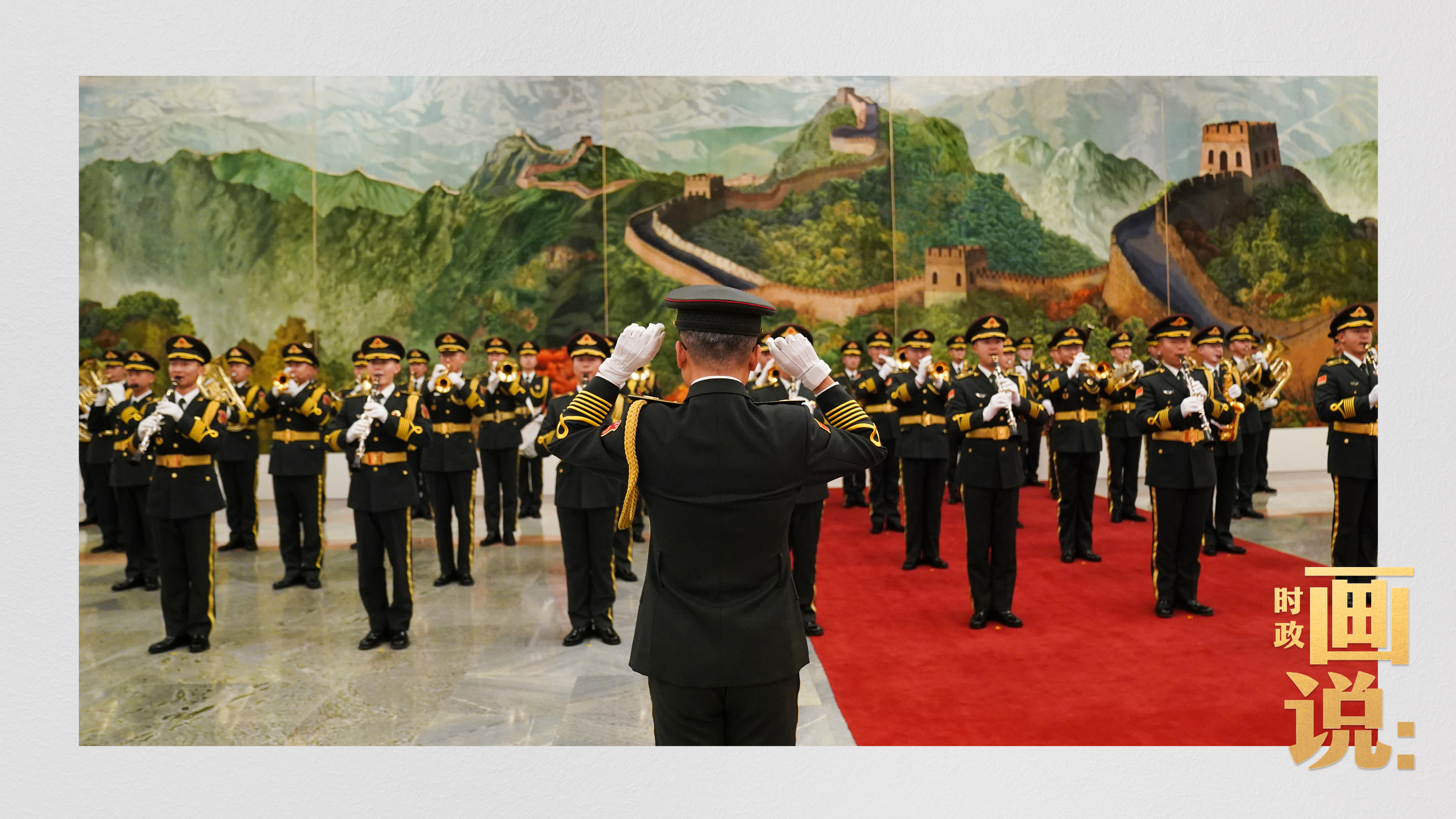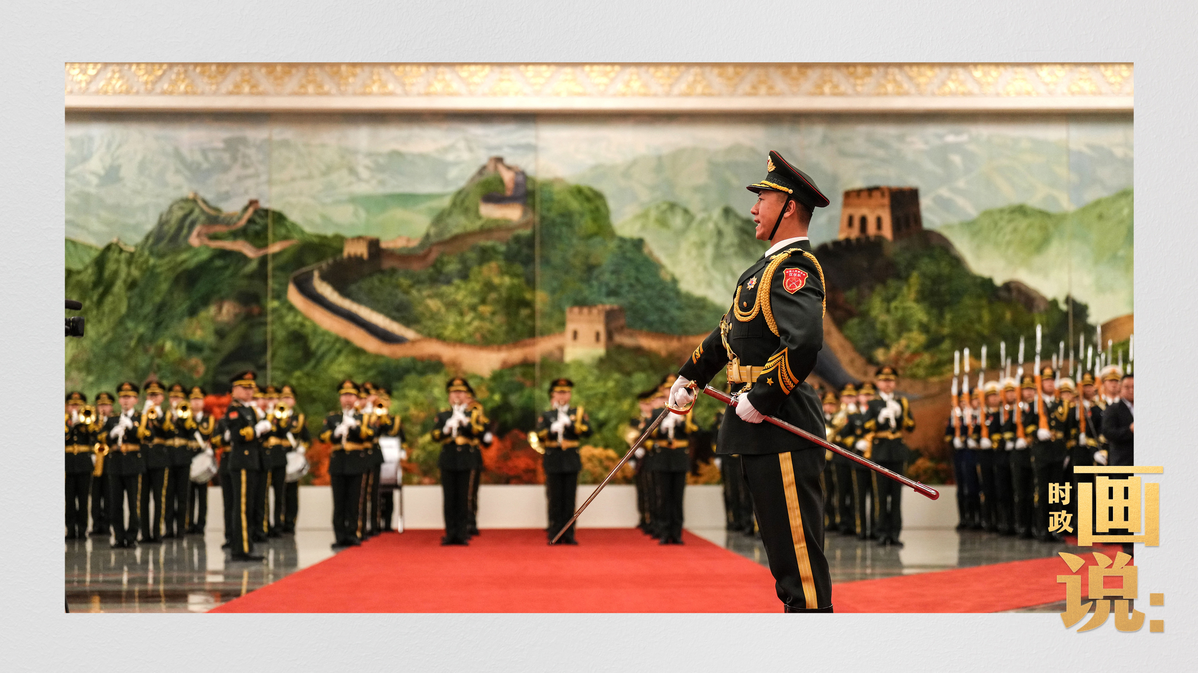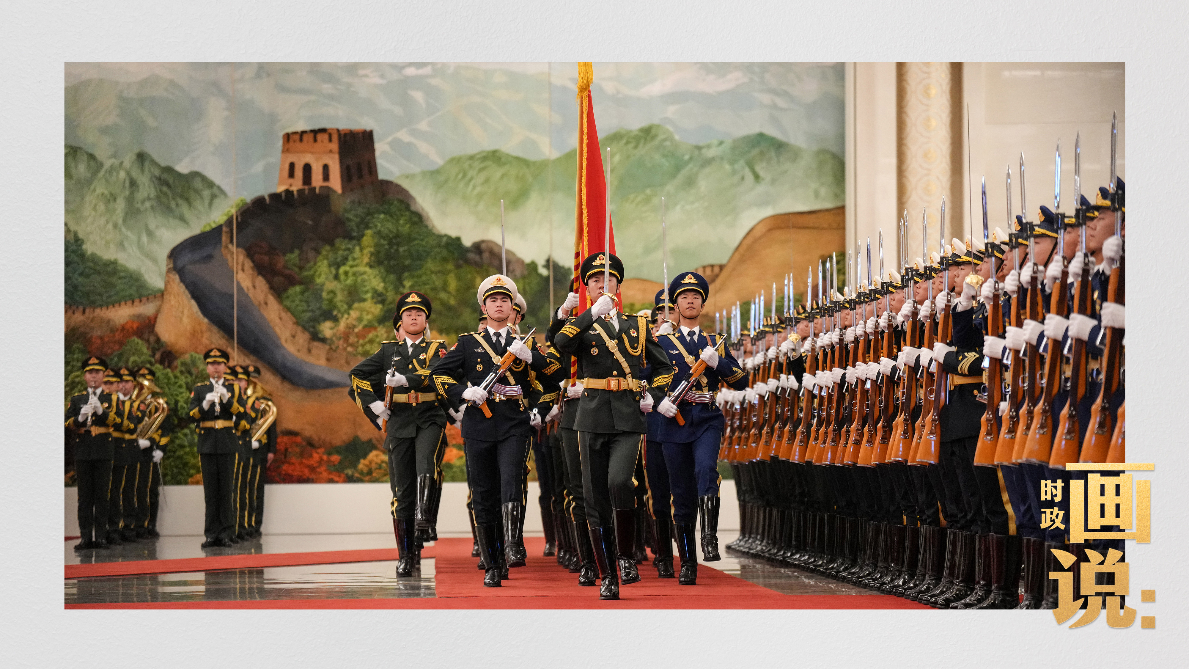 ▲马克龙在习近平陪同下检阅中国人民解放军仪仗队并观看分列式