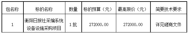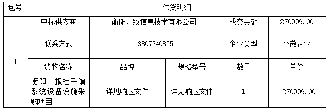 衡阳日报社的衡阳日报社采编系统设备设施采购项目于2025年12月5日结束,现将中标(成交)结果公告如下: