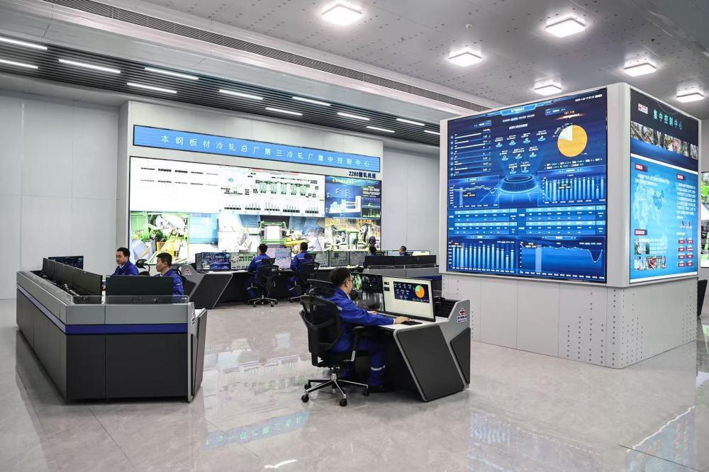 ▲工作人员在鞍钢集团所属的本钢板材冷轧总厂第三冷轧厂集控中心监控设备运行情况。