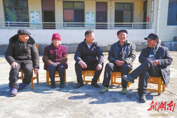 ▲1月5日,张家界市永定区谢家垭乡敬老院,田卫(中)与老人们交谈,询问他们的身体与生活状况。向韬 摄(湖南图片库)