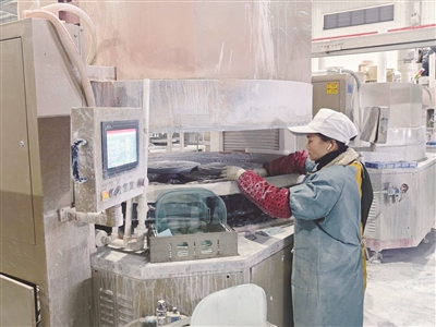 ▲聚衡光电项目内,工人们正在对产品进行加工。