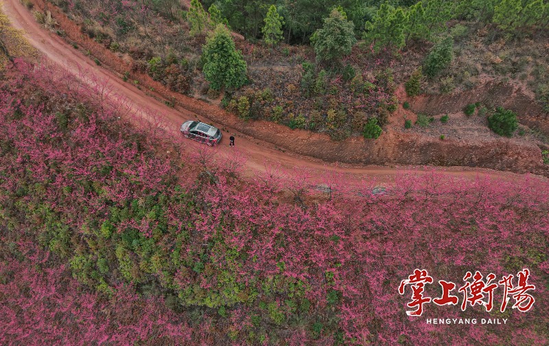 ▲航拍衡山虎山福地樱花。通讯员王桂春 摄