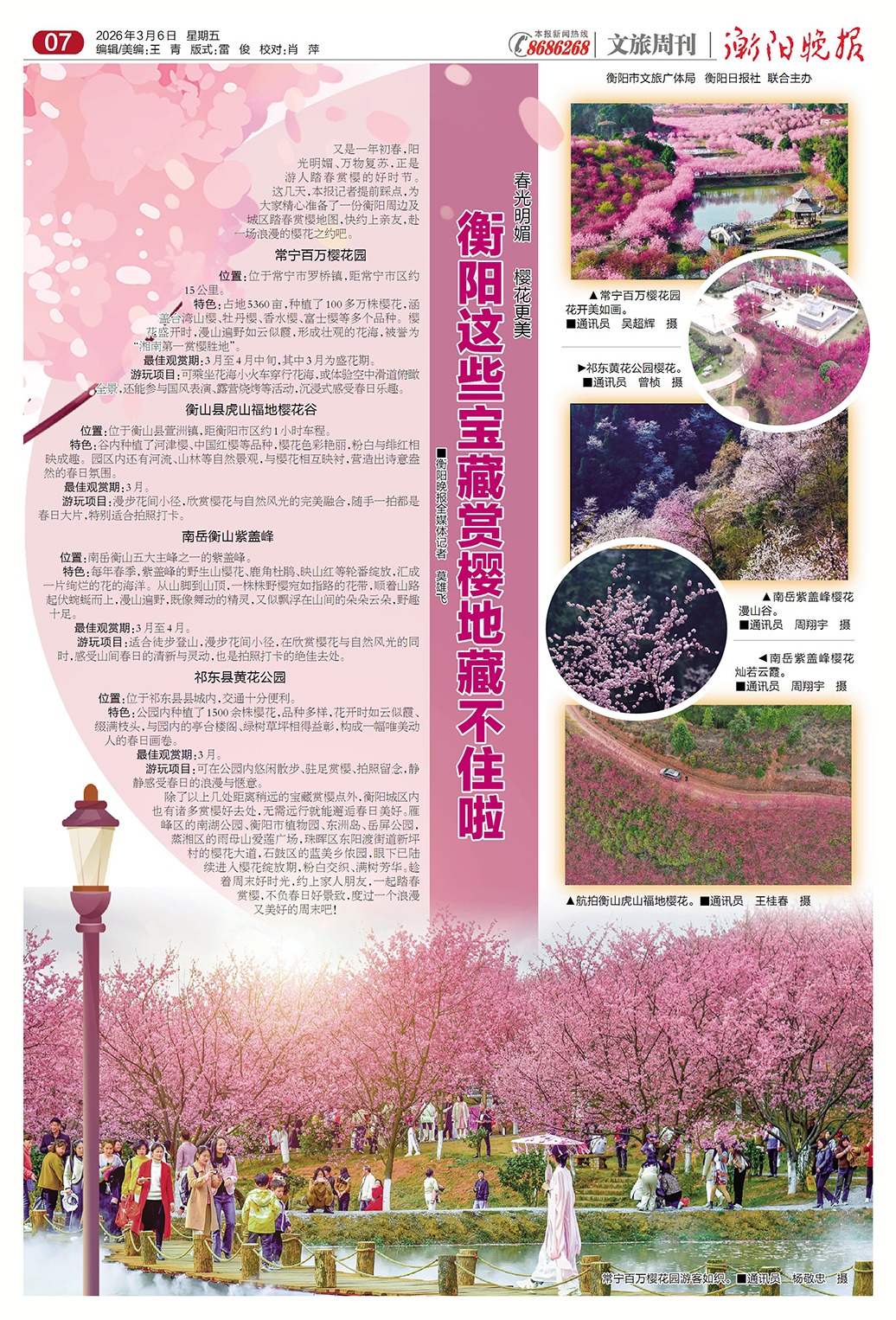 又是一年初春,阳光明媚、万物复苏,正是游人踏春赏樱的好时节。这几天,本报记者提前踩点,为大家精心准备了一份衡阳周边及城区踏春赏樱地图,快约上亲友,赴一场浪漫的樱花之约吧。