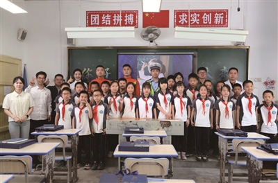 ▲在AI团课上,民警来到孩子们中间,与“未来的自己”同框。