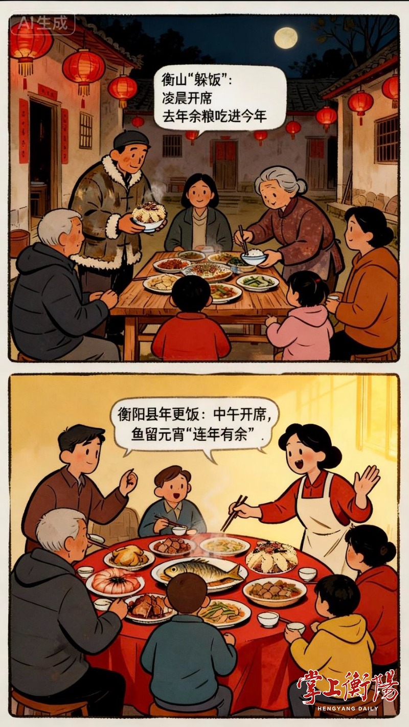 更有意思的是,衡阳不同地方吃年夜饭的时间不统一,早、中、晚都有,而且各有讲究。