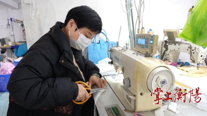▲赵姐在制衣厂忙碌,从“宝妈”变“工人”,月入3000多元。李孜 摄