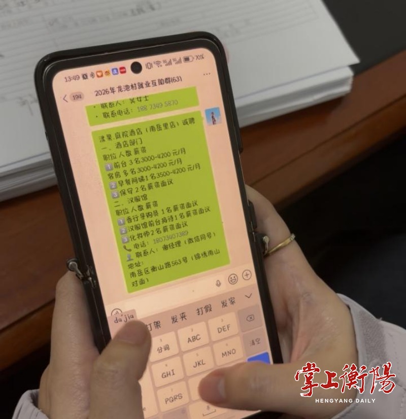 ▲村干部在“村民就业互助群”里发布用工信息。