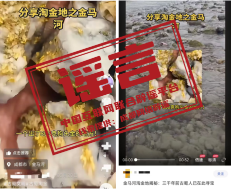 辟 谣“金马河现800克狗头金”视频系拼接剪辑